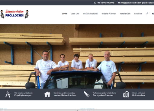 Hier eine Seite eines alteingesessenen Zimmereibetriebes aus der Nähe von Schwäbisch Hall. Live-Ansicht unter http://www.zimmerarbeiten-proellochs.de